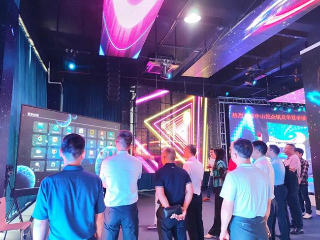 当看到我们的LED沉浸式AR视觉体验馆时,大家都被它酷炫的视觉效果,强互动性所吸引!对龙艺禧的表面GOB镀膜工艺,具有防磕碰,防水防尘防潮的特点,细细触摸体验,并给予好评!