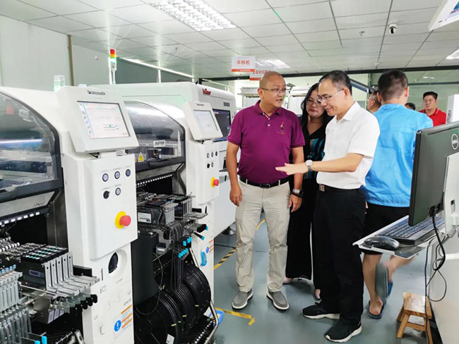 最后, 领导一行人深入到智能生产车间进行了仔细认真的观摩,对产品的生产流程和多宝电竞LED显示屏不同的产品造型、特性有了更直观的了解。同时对公司2020年布局的新基建项目“5G智能灯杆”,及主打互联网租赁的“云仓”的完整产业链模式做了深入了解;对于公司的创新项目及模式,领导们给予了高度认可和赞扬;称赞多宝电竞未来能成为“世界的多宝电竞”!