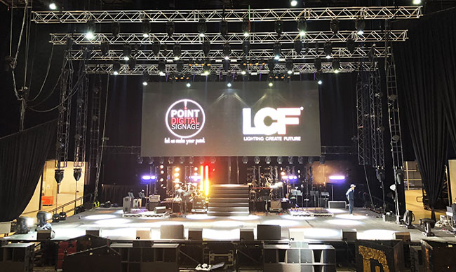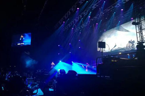 LED大屏幕,侧方以两个LED小屏为辅助。这三块显示屏均采用多宝电竞自主研发的租赁屏P4.81,500X500mm的箱体尺寸,轻松实现拼接要求,模组前后维护,智能显示模块,产品使用稳定,通过利用现代声光电的渲染,在产生强烈的舞台艺术效果的同时也不喧宾夺主。