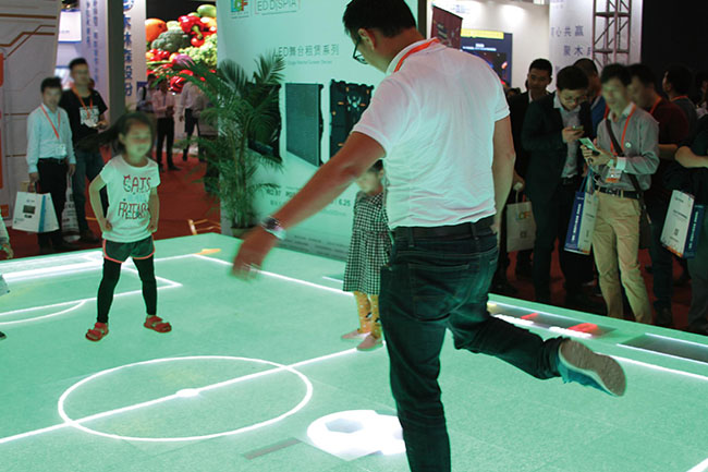 多宝电竞P4.81互动地砖屏防刮、防撞、防磕,高耐压、高承重,每平米承重可达1.5T。安装方便,支持徒手安装或导轨安装。届时,舞台即视感、零距离接触感将在地砖屏中一同展现,观众也能直接加入到互动比赛中来,感受互动大屏的创新玩法。
